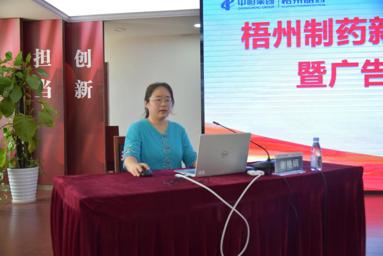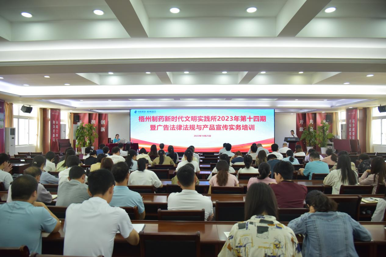 近日,梧州制藥在公司辦公樓六樓一號(hào)會(huì)議室舉辦新時(shí)代文明實(shí)踐所2023年第十四期暨廣告法律法規(guī)與產(chǎn)品宣傳實(shí)務(wù)培訓(xùn),特邀梧州市市場(chǎng)監(jiān)督管理局廣告監(jiān)督管理科科長謝艷娟前來授課,梧州制藥各部門、各車間,以及集團(tuán)公司和各兄弟企業(yè)相關(guān)人員共計(jì)90余人參加培訓(xùn)。